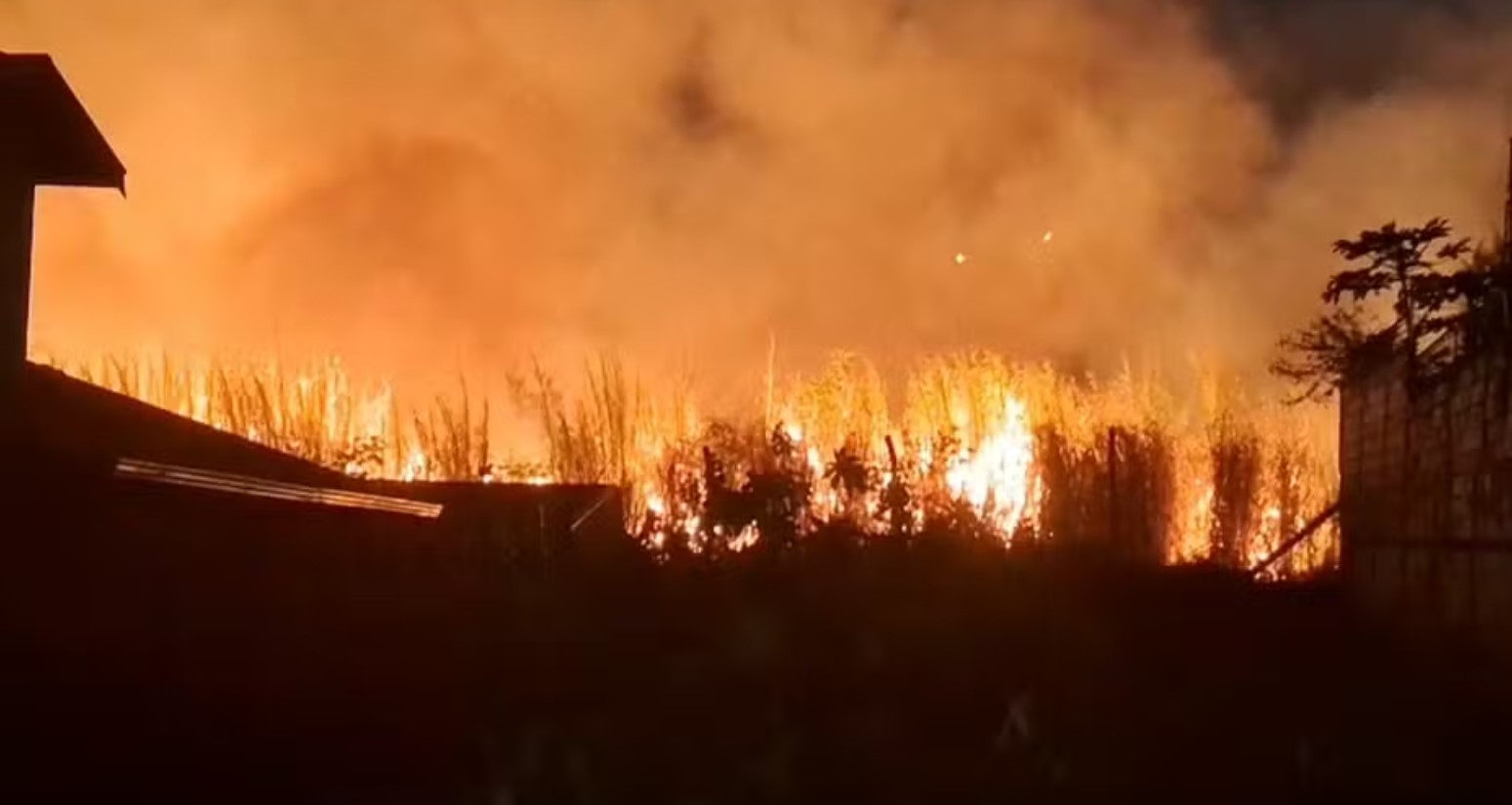 Para impedir que o fogo avançasse para as casas próximas, equipes abriram um aceiro, uma faixa de terreno onde a vegetação é removida para criar uma barreira contra a propagação das chamas.