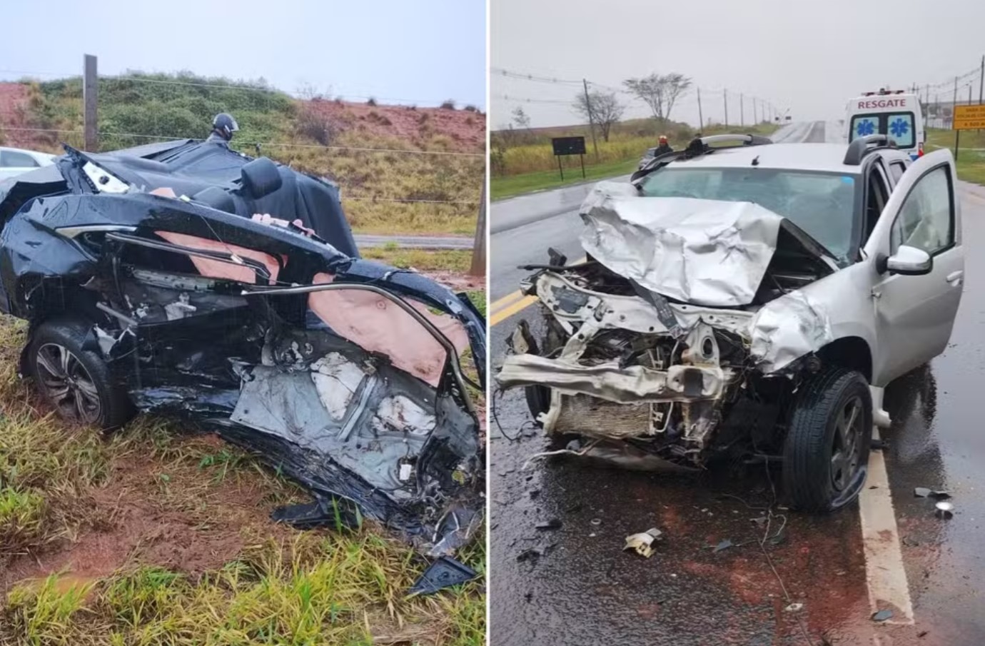 Com impacto da batida, um dos veículos se partiu ao meio. O motorista, um homem de 31 anos, estava sozinho no carro e foi socorrido com ferimentos leves. Chovia no momento do acidente e ele disse que o carro aquaplanou.