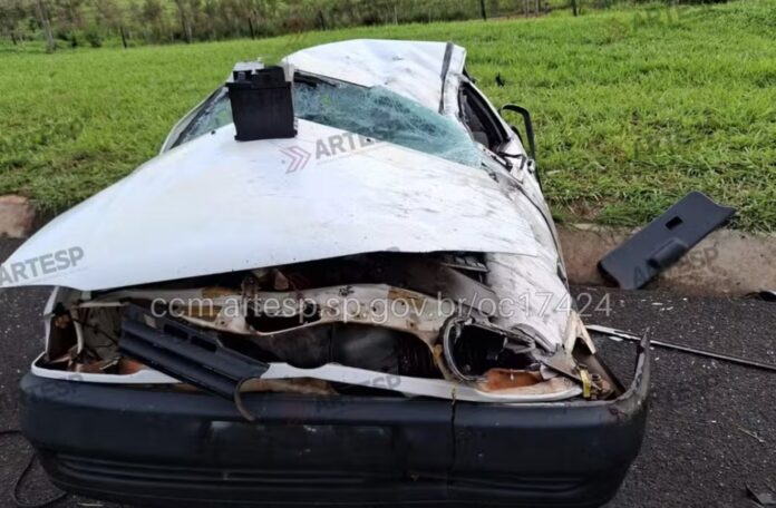 Carro capota após motorista perder o controle da direção em rodovia; uma pessoa morreu