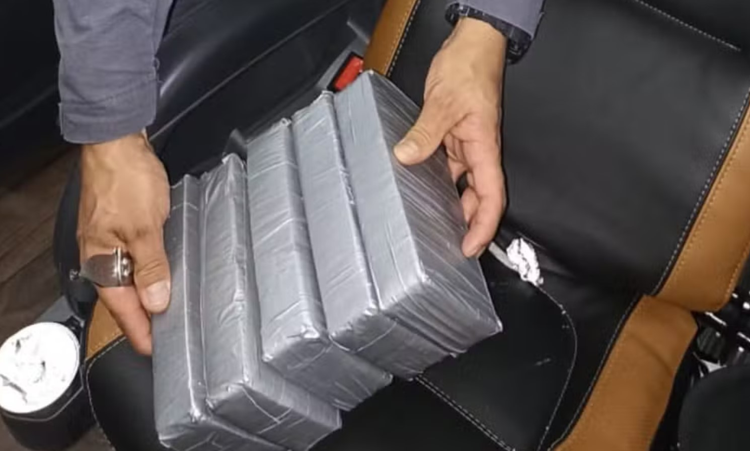 Os policiais desconfiaram da atitude da dupla e vistoriaram os assentos onde eles estavam. Dentro da estrutura das poltronas, entre a espuma e o forro, foram encontrados cinco tabletes de pasta base de cocaína, que totalizaram 5,36 kg.