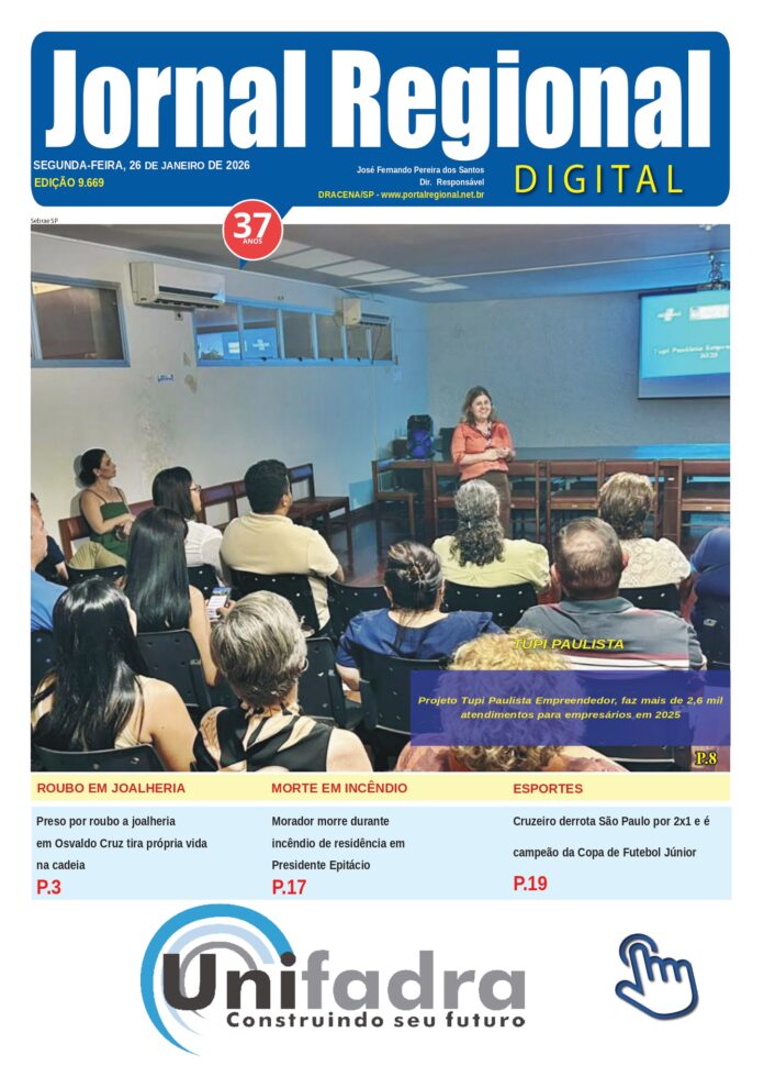 Jornal On-line JORNAL REGIONAL, 26 DE JANEIRO DE 2026 27 de janeiro de 2026 Compartilhado FacebookCopy URL Você precisa fazer login na área do assinante para visualizar este conteúdo. Por favor, Faça login no topo do site. Caso não seja assinante, Clique no botão Assine Já !